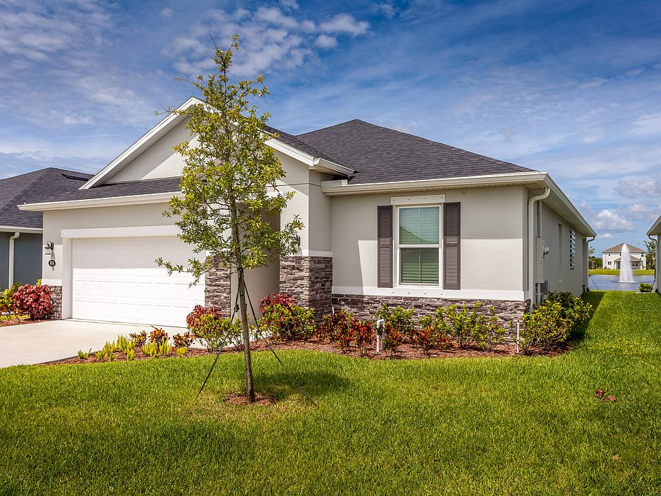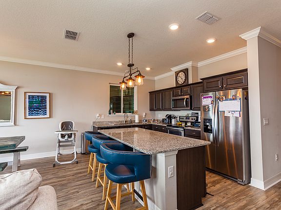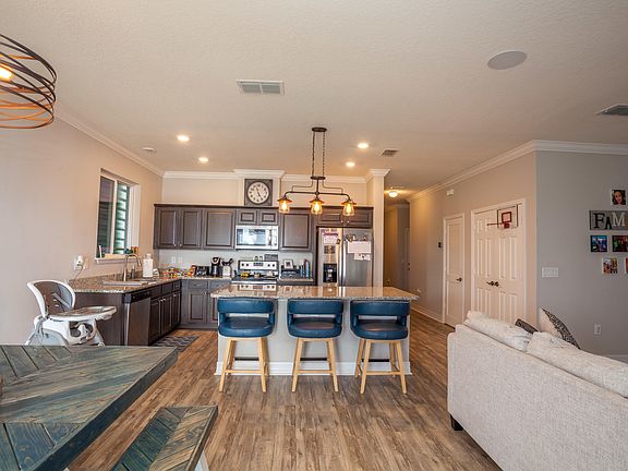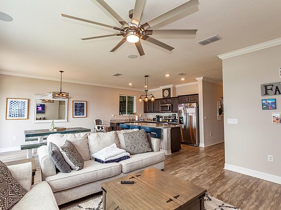 Feast your eyes on this beautiful 4/2/2 with Lake view in the new KB Homes community. Move right in to this open floor plan home and just add your personal touches. The great room spaces open to the kitchen and dining room for a entertainers dream! Home offers wood laminate flooring through out the main areas and carpet in the bedrooms. Enjoy your evenings on the porch or light a fire in your custom fire pit area. Why wait to build when this home is ready now.