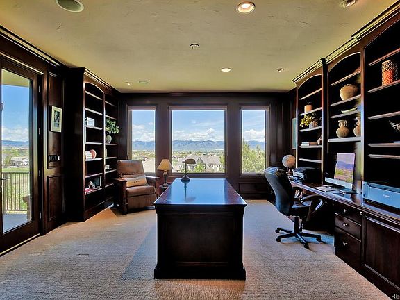 Gorgeous Custom Home on a one of a kind Lot in Prestigious Highwoods Boasting Unbelievable Panoramic Views! *Brazilian Cherry Floors*Hand Troweled Texture*Tray Ceilings*Vaulted Ceilings*New Paint*New Carpet*. Gourmet Kitchen*Granite*Double Oven*Island*Butler's Pantry*Eating Space*Pantry* Executive Study*Luxury Woodwork*Wainscot*Built-in Bookcases*Covered Deck w/ Breathtaking Views*En-Suite Bathrooms Compliment all Secondary Bedrooms, a Master Suite w/ 5-piece Bathroom & Large His/Her Walk-in Closets. Beautifully Finished Walk-out Basement Features*a Newly Renovated Home Theater*Family Room*Wet Bar*Workout Room*Guest Room,*Bath*Storage*. Other Home Features: *Central Vac*Covered Patio*3AC Units* 3 Furnaces*Humidifier*Several New Windows. The Home is Located Within Steps of the Best Hiking & Biking Colorado has to offer. Whether Relaxing or Entertaining your New Home is Complete with a Tranquil Water Feature, an Abundance of Balconies, and a Sport Court for the Whole Family to enjoy!