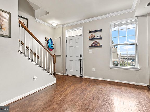 Meticulously maintained 2 Bed | 2.5 Bath | 2 Car parking townhome in O'Donnell Square! The lower-level entrance opens to a versatile space, ideal for an office, mudroom, playroom, or den, complete with a convenient half bath. The main level exudes charm with a spacious living room featuring stunning hardwood floors, high ceilings, a bay window bump-out, and custom plantation shutters. The kitchen is a chef's dream, boasting beautiful granite countertops, an oversized island, ample cabinet space, a pantry, and stainless steel appliances. Step outside to one of O'Donnell Square's largest decks, perfect for entertaining or unwinding. Upstairs, discover a primary suite with a double Roman marble shower, alongside an additional bedroom and hallway full bath. Enjoy the convenience of a one-car garage and a one-car parking pad, offering two personal parking spaces. Conveniently located to the shops at Canton Crossing, classic Greektown restaurants, Yard 56, Bayview Hospital, and major roadways.
