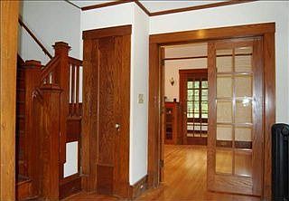 Surround yourself w character and charm! Welcoming entry with 3 sets of French doors. Inviting fireplaced front-to-back livingroom with French doors leading to sunroom. Sunroom features 3 walls of windows, all overlooking the private setting of this home. Brand new kitchen with custom cabinets, SS appliances, tiled flooring, & corian countertops. Master bedroom with fireplace. Newer baths. Rich native wood moldings throughout. Handsome wood interior doors with glass knobs. Set back & nestled in privacy!