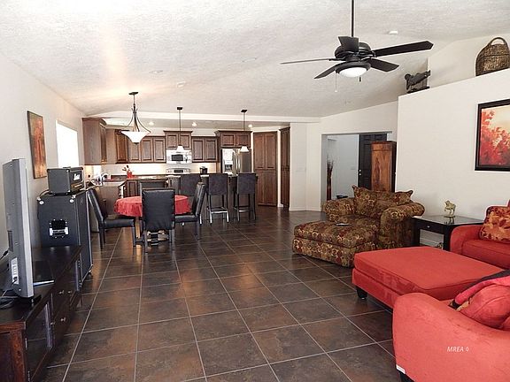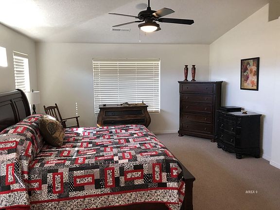 If this were a Mercedes-Benz then we would be describing it as having extremely low miles. Original owners have only occupied the home less than 2 months each year. A highly upgraded Ence home on a corner lot commanding magnificent eastern and southern mountain views. A very open concept, split bedrooms plan that features a kitchen with raised panel cabinets, granite countertops, stainless steel appliances, breakfast bar and large pantry. Beautiful tile flooring in the living areas--carpet in the bedrooms. Some of the nice features of this home are central vac, water softener, speakers throughout, laundry room sink, satin nickel bathroom fixtures, and security system. The large backyard is low maintenance with a full length patio and should you wish to add a pool the electrical is already in. Large garage--room for 2 vehicles, ATVs and additional storage.