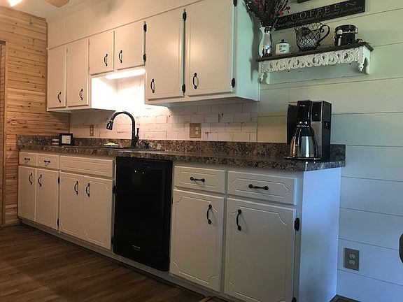 Totally remodeled brick 3 BR, 1 BA home with 2 car detached garage on 1 acre lot. Detached garage has hardy board siding and hardy board trim that will be maintenance free. Home has lots of modern decor and all kitchen appliances remain. Metal carport stays with property. Roof is only 1 year old. Lots of privacy on this dead end road. Covered deck on the back of the home.