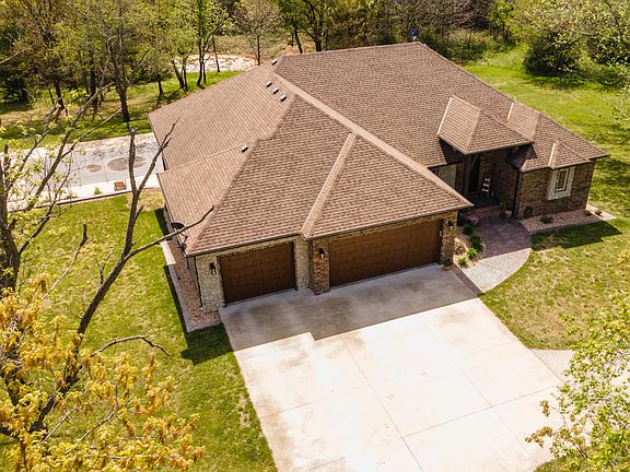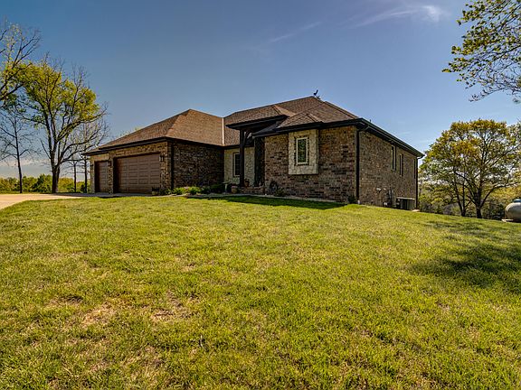 This all brick home located south of Nixa is located on some acreage. The home features a walkout basement covered back deck, inground pool, covered patio, john Deere room and 3 car attached garage. The interior has wood floors throughout the 1st floor, spacious bedrooms and walk-in closets. The kitchen features custom cabinetry, an island, granite countertops and stainless appliances. This home is at the end of a road. The saltwater in ground pool has ample patio space for entertaining guests. The basement features a wet bar area and spacious open room with a bathroom and two bedrooms. Home has a 40 x 80 enclosed shop. Come take a look and see.