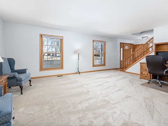 Welcome to this stunning Fairfax Model Plus with an extended family room, nestled in a picturesque setting backing up to Jenson Park! This meticulously maintained home boasts countless updates and thoughtful features. Interior freshly painted with neutral colors. The spacious kitchen showcases hickory cabinets with convenient pull-outs, a lazy Susan, sponge door by the sink, stainless steel appliances, a pantry Cabinet with pullout drawers, and a Garden window perfect for natural light. The adjoining eating area flows seamlessly into the family room, creating an inviting space for entertainment. Enjoy the warmth of the extended family room with hardwood floors, built-in shelving, cabinets, a stunning gas-log stone fireplace with electric start, vaulted ceilings, and surround sound with a receiver. Upstairs, find brand-new carpet 2023, the living and dining room in 2025, crown molding and dimmable lighting in the dining area. Hardwood Floors in Entrance, Kitchen and Powder Room. The luxurious main bedroom suite offers a walk-in closet and reach in closet, ceiling fan w/ light, and a remodeled private luxury bath with a Kohler whirlpool tub, vanity with Granite top, recessed lighting, separate shower with glass doors, and ceramic tile flooring. All bedrooms are generously sized with ceiling fans and ample closet space, the 4th bedroom has an extra deep closet. Remodeled Guest Bath in 2019. Additional highlights include solid 6-panel wood doors, an extended mudroom with built-in bench and coat closet, a 13X29 Rec Room in finished basement with a wet bar. The home's exterior features updated windows, siding with lifetime warranty, roof 2021 and a front porch (2019) with dimmable light great spot to relax. Lennox High Efficiency Furnace & Central Air 2016. Garage with extra storage the Electric garage door opener 2019. Highly rated District 54 & 211 Schools. Close to parks and shopping. Minutes to Woodfield Mall, entertainment, restaurants and expressways-this home is move-in ready and has everything you're looking for! Don't miss out-schedule your tour today!