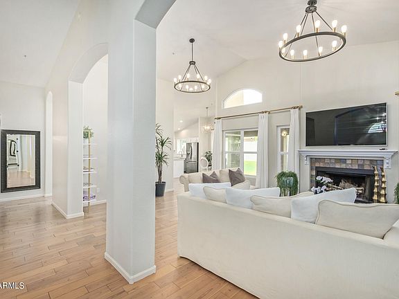 Stunning single story with fabulous upgrades. Unique features create the perfect space for entertaining and everyday living. Beautiful wood look tile floors, quartzite counters, vaulted ceilings and an abundance of natural light. Park like backyard with low maintenance turf and peak a boo mountain views.