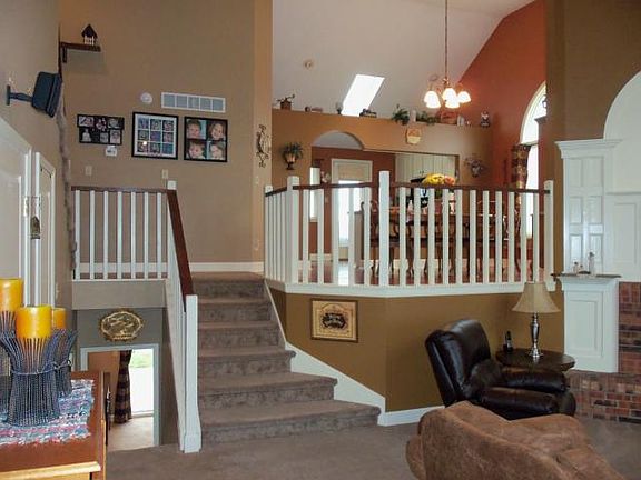 Completely renovated home on 5 breathtaking acres. New... roof, carpet & padding, security system, water heater, dishwasher, top of the line HVAC, light fixtures, whole house humidifier, water softener, custom deck, bathroom flooring & more! Special features include... high vaulted ceilings, open floorplan, extra windows for plenty of natural light, finished walk-out basement, covered patio, storage shed & huge outbuilding w/ electricity, 2 classic wood burning fireplaces, walk-ins & more! Great School District!!