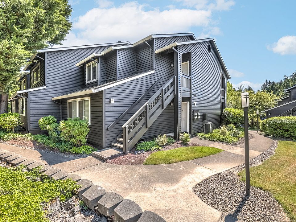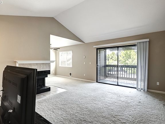 Just in time to enjoy the pool! Light & bright upper-level condo features vaulted ceiling & neutral colors. Spacious open floor plan w/fireplace, ceiling fan & nice size covered patio. Kitchen has light cabinetry & white appliances, including refrigerator. Spacious bedroom w/w-in closet & adjacent bathroom. In-unit laundry w/washer & dryer. Exterior painted 2022. New comp roof 2018. New windows 2014. Storage. Great location near Murrayhill Marketplace, restaurants, shopping, Progress Ridge & Hwy 217.