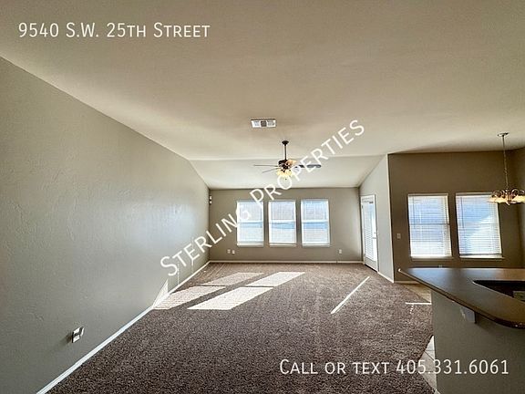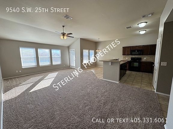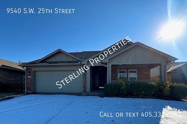 Welcome to this charming 1531 sq ft single-family home in the desirable Fountain Grass community. This home features an open floor plan with a spacious living room, perfect for entertaining guests or relaxing evenings at home. The master suite is located at the front of the home. Two additional bedrooms provide ample space for family or guests. 2 full bathrooms ensure convenience for everyone. An attached 2-car garage provides secure parking and additional storage space. Enjoy the peace and tranquility of Fountain Grass, while benefiting from the excellent schools within the Mustang Public School district. Conveniently located off Morgan Rd & SW 29th Street in Oklahoma City. 2 Bathrooms 2 Car Garage 3 Bedrooms Central Heat & Air Covered Patio Electric Stove Kitchen Island Open Plan Split Bedrooms Washer & Dryer Hook Ups