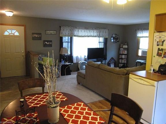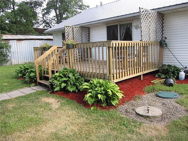 Cozy 2 bedroom, 1 bath Ranch with open concept. Nice deck off the back overlooking the back yard and 2 car detached garage. Area park is close by with playground equipment etc. Basement is dry and was built with extra block, so it could be finished for extra room if you like. There currently is a bedroom in the basement. New water softner just installed, newer Hot water tank and the Roof is brand new in July of 2016. Also, there are lots of community activities during the year around this home that you can enjoy if you like. Call for an appointment today.