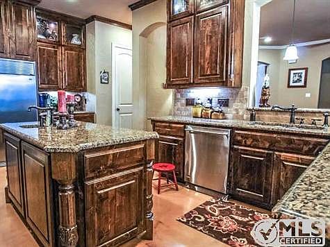 Private, heavily treed l acre plus, waterfront with dock! Pool and spa, outdoor entertaining with kitchen, grill, fireplace! Wood floors!Spacious living area with fireplace. Oversized island kitchen, gas cooking, commercial grade refrig-freezer, icemaker, pantry. Separate study. Private master suite, luxury bath. Bedroom 2 is downstairs, full bath. Upstairs, two bedrooms with a playroom between them, media room, gameroom with bar. Brokered And Advertised By: KELLER WILLIAMS REALTY Listing Agent: TERRI CHRISTIAN