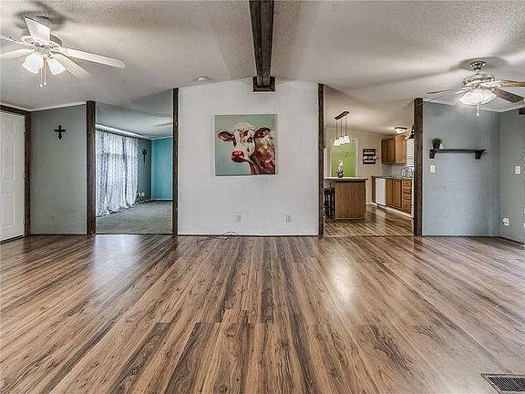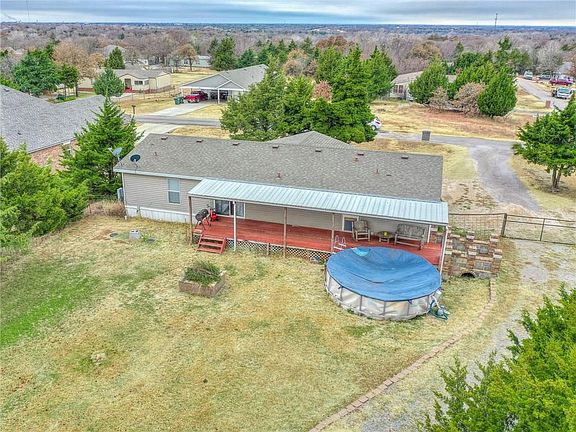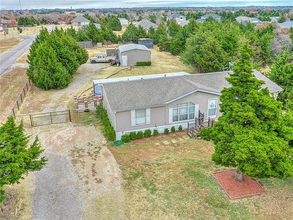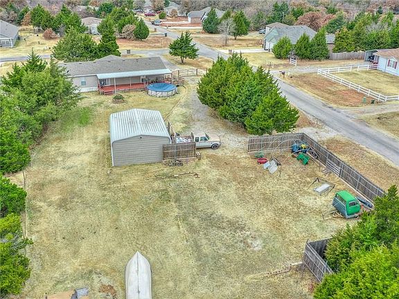 Adorable home in Edmond on .57 of an acre with a SHOP! 3 bedrooms 2 baths + a second living area! Nice custom woodwork & upgrades throughout. Spacious kitchen with an island breakfast bar AND a dining room space, corner pantry, & a built-in china cabinet/additional storage. The master suite features a custom closet, 2 sink/vanity areas, a shower, & a large soaker tub with real brick accent. The 15x20 shop has its own driveway/access and is complete with concrete floors, electricity, & a manual garage door. Fully fenced back yard with a covered deck patio the full length of the back of the home, a nice firepit, and nice trees.