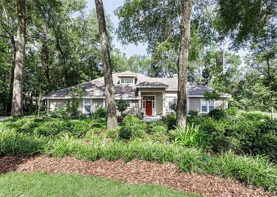 Under contract-accepting backup offers. Exquisite Haile Plantation Pool Home on Golf Course – A True Model Home. Tucked away in a quiet cul-de-sac and perfectly positioned along the prestigious Hawkstone Country Club & Golf Course, this stunning pool home radiates elegance and sophistication. With exceptional design and meticulous attention to detail, this residence shows like a true model home—an absolute must-see. Offering 4 bedrooms and 3 full bathrooms, or the flexibility of a 3/3 with a spacious bonus room, the open-concept floor plan invites both comfort and style. Rich wood flooring flows seamlessly through the main living areas—including the family room, formal dining space, kitchen, and walkways—complemented by a soothing neutral palette throughout. A charming front dormer acts as a natural skylight, bathing the kitchen and dining areas in soft, ambient light. The chef-inspired kitchen is a showstopper, featuring stainless steel appliances, a farmhouse sink, solid stone countertops, and elegant wood cabinetry. It opens gracefully to the family room, where you’ll find a cozy wood-burning fireplace, custom built-in shelving, and a tray ceiling with ambient lighting—perfect for intimate evenings or upscale entertaining. French doors lead to an expansive screened lanai and sparkling pool area, offering serene views of the manicured golf course—an idyllic setting for outdoor living. Just off the kitchen, the laundry room is impressively appointed with custom wood cabinetry and large windows that fill the space with natural light. The primary suite is a luxurious retreat, complete with plantation shutters, double vanities, a soaking tub, and a walk-in closet with custom wood shelving. Additional highlights include: Elegant pavered walkway leading to the front entry, recently refreshed mulch and mature landscaping, enhancing curb appeal. This home perfectly balances comfort, luxury, and lifestyle. Don’t miss the opportunity to call it your own. Contact us today to schedule your private tour.