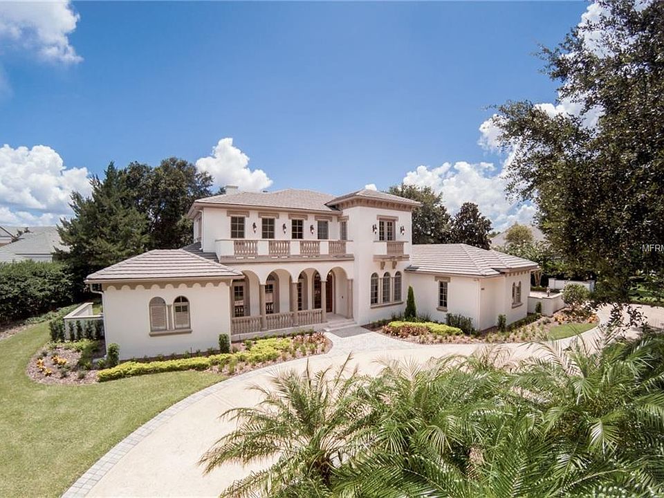 Boasting more than 9,000 sq. ft. of living space within the gated community of Lake Nona Golf & Country Club, this home is highlighted by an abundance of natural light accented by Palladian-style windows underneath ornate archways along the first floor. With elegant views of Lake Nona's championship golf course, the estate features five bedrooms, six full and two half bathrooms and sits on 0.85 acres. The multilevel foyer immediately draws attention to the stunning curved staircase upon entry. With separate entrances to the dining room, living room and den, the foyer serves as the perfect introduction to the magnitude of this magnificent home. The kitchen features top-of-the-line appliances and added features including two islands, a breakfast bar, walk-in pantry and separate breakfast nook. Adjacent to the kitchen, the family room offers a large entertainment space that opens out onto a covered lanai complete with a summer kitchen that overlooks stunning golf-course views. A two-story indoor sport court with glass door entryway can be found next to the main living areas on the first floor. The master suite features large windows with views of the golf course and access to the outdoor living areas. The master bathroom encompasses dual custom vanities, a bathtub, separate walk-in shower and an oversized walk-in closet. This estate offers four additional en suite bedrooms with walk-in closets. Additional features include a three-car garage and golf cart garage, a spacious storage room and a large game room.