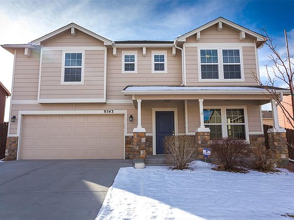 This stunning 2 story home is located close to Peterson and the Schriever Air Force Bases, parks, and the Powers corridor with shopping, dining, and entertainment* This home has a covered front porch with mountain views* As you step inside from the covered front porch you are greeted with an open floor plan with large living spaces* The Living Room has over-sized windows that allow natural light into the home* The Kitchen features ample cabinet and countertop space, a center island with seating, and a pantry* The Dining Room has a walk-out and opens up to the Family Room* Just up the stairs is the spacious Loft with access to the Laundry Room and a full Bath* The Master Suite has a sitting area, an adjoining 5-Piece Bath and a huge walk-in closet* There are 2 additional Bedrooms upstairs* This home has central air for the summer months* The large backyard has a concrete patio and would be a great place for entertaining*