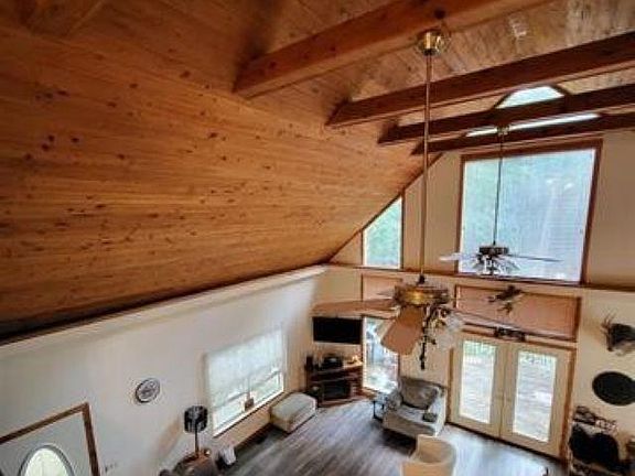 Country Road, take me home, to the place I belong...and you belong in THIS place!! With over 3000 sqft spread over 3 levels and situated on 2.19 beautiful, serene acres, you'll be in awe of just how much space there truly is both inside and out.! In addition to 4 bedrooms, with the primary suite on the main floor, 2 bedrooms on the upper and 1 on the lower level; there is a huge Great room with stunning Hickory wood cathedral ceilings and Oak beams, a big kitchen featuring solid wood cabinets, Pantry, tiled counters, Breakfast Bar and Center Island plus an office and a large Den. There's a bathroom on each level, with the primary bath boasting a Garden Tub & Separate Shower, whilst the recently updated ground floor bathroom has a modern jacuzzi tub/shower and jets. Enjoy Beautiful Evening Sunsets from the Great Room deck, overlooking the partly wooded lot that even has a small creek running through it! With a little love and some updates this could be the country manor of your dreams.