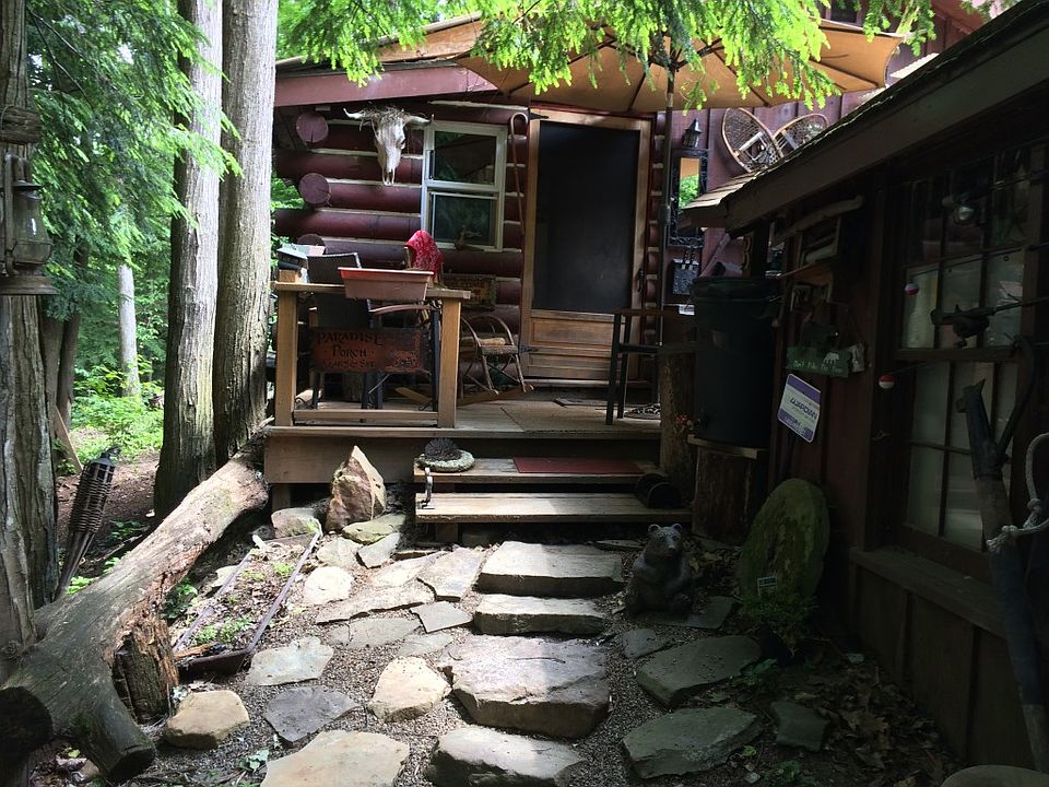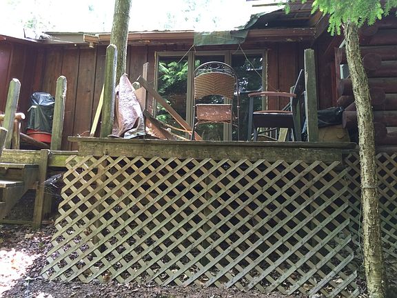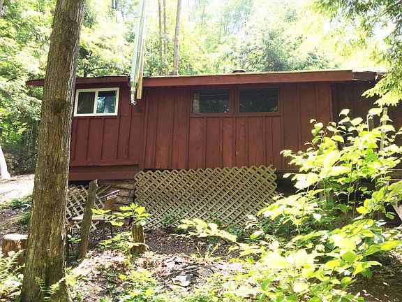 The current owner has lived in the cabin for 14 years, and has lived off the earth as much as possible. There is driveway access. Unique cabin. The kitchen has a hand pump for water, and propane for cooking and to run the refrigerator. There is a dining and living room with a wood stove to keep you warm and toasty throughout the winter months. And, there is a spacious bedroom. A 9 x 16 addition is currently being built for a large walk-in closet and a compost bathroom. The metal roof is new. The back deck overlooks the large fenced-in garden. The 20 acres consist of mostly hardwoods.