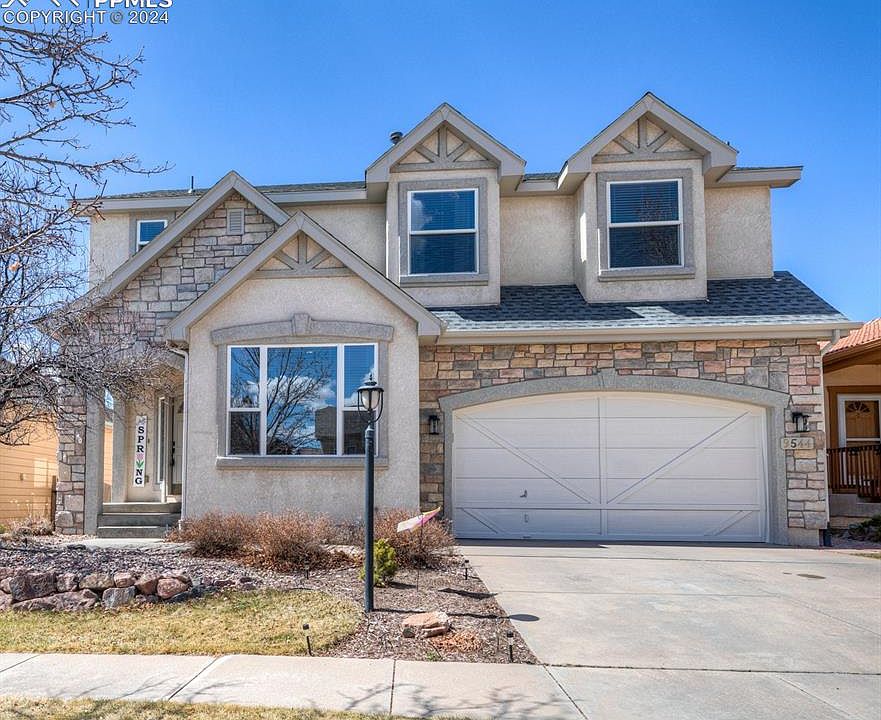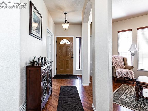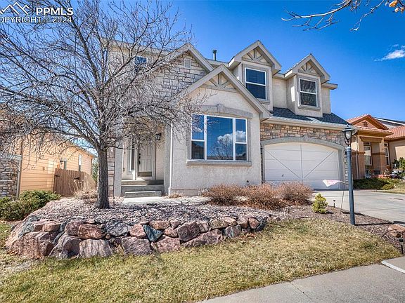 Views, Views of Pikes Peak and Front Range in this lovely home in the desirable D20 school district. Immaculate Home With Room To Entertain! Open Floor Plan With Designer Touches & Numerous Custom Features! Follow The Hardwood Floors Through The Spacious Main Level & Out To The Inviting Deck With Unobstructed vies of Pikes Peak! Large Gourmet Kitchen With Upgraded Cabinets, Wrought Iron Hardware & Chandeliers. Sleek Black Appliances, Breakfast Nook Looking Out At The Front Range. Arched Columns Surround The Dining Space For That "Something Extra" Which Makes This Home Unforgettable! Convenient Butler's Pantry Serves The Formal Dining Room. Stack Stone Gas Fireplace With Niches, Built-Ins & Windows Makes The Living Room A Work Of Art. Bonus Main Level Study Great For a Library Or Home Office. Upper Level Master Walks Out Onto A Private 2nd Story Balcony - Perfect For Morning Coffee Or Pikes Peak Sunsets. Roomy Sitting Area, Built-In Entertainment Center, Components & Storage, Deco Ledges, Large Walk In Closet & Second Smaller Closet. French Door Opens To 5-Piece Master Bath With new luxuary vinyl plank flooring, Double Sink Vanity, Wrought Iron Hardware & Lighting, Soaker Tub & Tile Shower. Two Large Guest Rooms With Jack & Jill Bathroom Complete The Upper Level. Beautifully Finished Walk-Out Basement/Recreation Room Opening To Covered Patio & Level Backyard. Wet Bar With Matching Cabinets, Wine Rack, Refrigerator, Tile Floor, & Tiled Bar Top. Sound System In Basement. Laundry Room With Utility Sink & Cabinet. 4th Bedroom Is Away From The Main Activity. Full Bathroom With Ceramic Tile Floor, Backsplash & Countertop is tucked away at the end of the hall. 2 new furnaces, 2 AC units. 3 Car Tandem Garage ,Storage & Built-In Cabinet Workspace. Quiet Cul-De-Sac. All This & So Much More Located In The Award Winning Academy School District 20 - Convenient To Everything, schools, parks, shopping, military bases, hospitals, and so much more. Call this house your home today.