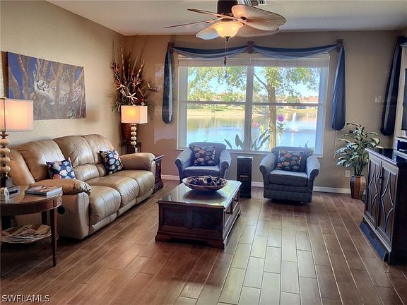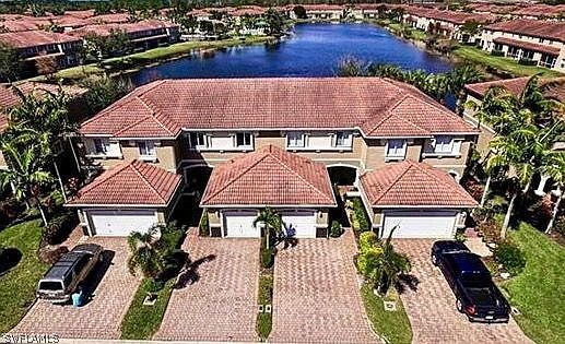PRICE REDUCED!! This beautiful townhome will sell itself! As you pass the manicured professional landscaping and oversized front paver patio to enter through the front door, you see the gorgeous water view ahead of you, and you will know that this is your new Florida home. Its CONVENIENT LOCATION is less than 3 miles from excellent shopping, dining and entertainment options at popular Gulf Coast Town Center; 3 ½ miles from SW FL International Airport; and 15 miles from some of Florida’s most beautiful beaches. This home has been well maintained and has many upgrades. The 4-ton, 16-seer A/C installed in 2012 will keep you comfortable even on those hot August days. Custom-made accordion hurricane shutters provide safety in adverse weather conditions. There’s tons of storage in the two-car garage, including three overhead storage bins; two ceiling mounted bicycle/kayak hangers; and wall organization systems on both side walls. There’s an additional paver patio in the backyard off the screened lanai for your large barbecue grill. Some additional upgrades include granite countertops, cherry cabinets, stainless steel appliances; upgraded lighting and much more.