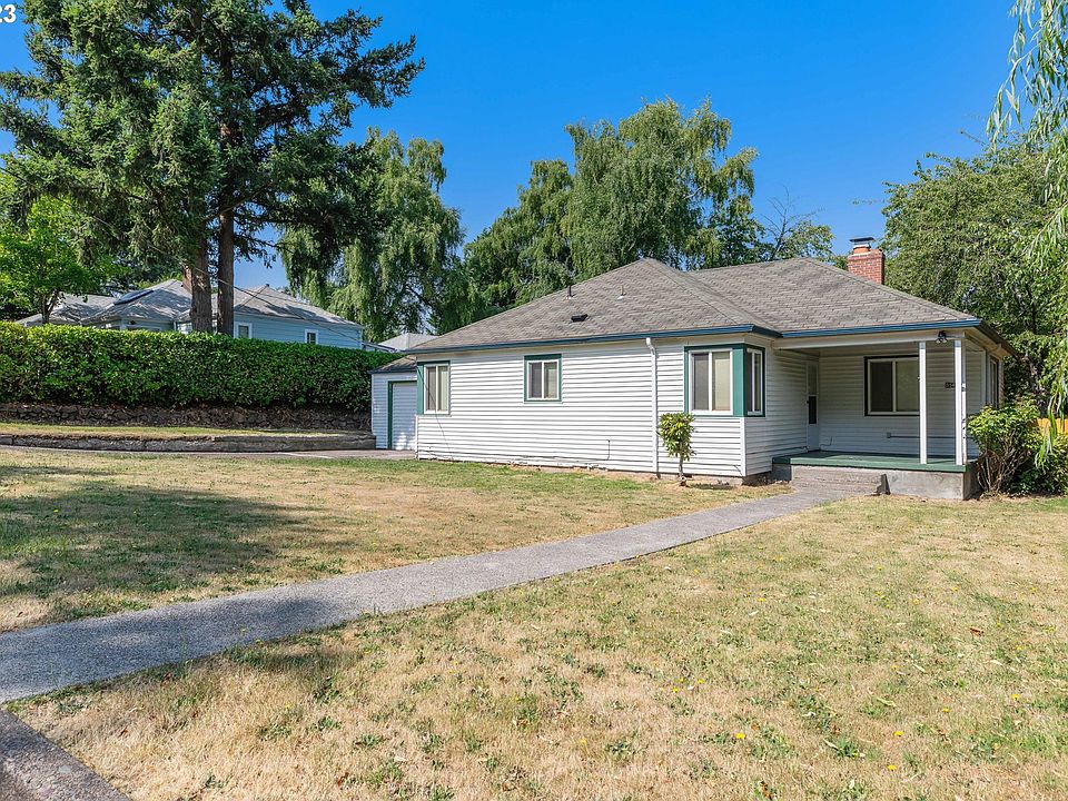 Definitely worth a look at this price! Much more than you might expect. Solid 2 Bedroom 1 Level on a gently curving low traffic street. The charming fireplace is the focal point of this home. Enhanced by fresh interior paint throughout as well as new carpet and flooring. The covered front porch is inviting and is large enough for outdoor living. The very spacious level back yard is totally fenced and surrounded by a variety of shade trees. Perfect setting for someone yearning to start a flourishing garden. Spacious shed in back corner of yard. Location, although well off busy arterials, is surprisingly convenient to commute routes, a wide variety of shopping and many restaurants. [Home Energy Score = 4. HES Report at https://rpt.greenbuildingregistry.com/hes/OR10219454]