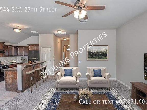 ** FOR LEASE OR FOR SALE** Charming and clean 3 bedroom home in the sought-after Mustang school district. Nestled on a corner lot in the Fountain Grass neighborhood, this house features an open living/dining layout with a split floor plan to allow privacy between the primary suite and secondary bedrooms. The kitchen features quartz countertops, stained wood cabinets, a breakfast bar, and gas cook range. You also get a nice-sized walk-in laundry room with cabinet storage. The primary suite offers a full bath and large walk-in closet. Covered porch and patio for outdoor enjoyment as well! *Digitally Staged- Refrigerator not included 2 Bathrooms 2 Car Garage 3 Bedrooms Central Heat & Air Gas Stove Open Plan Washer & Dryer Hook Ups