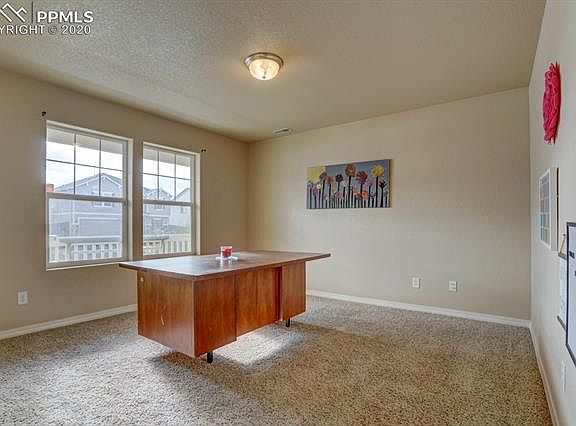This beautiful 2-story home is located in the desirable Cucharas Ranch neighborhood minutes from Peterson Air Force Base, Fort Carson, I-25, and the Powerâs Corridor! This home leaves nothing to be desired as you are greeted with formal/play room and a large window to the left of the entryway. As you continue to the living room you will notice the light, bright and Open-Concept floor plan that offers plenty of Living Room, Dining Room and kitchen space great for entertaining! This homes spacious Kitchen features high quality black appliances, huge center island, espresso staggered City-Scape cabinets with crown molding, and spacious pantry! Just upstairs, you have an oversized loft / sitting area with large windows off the large Master suite featuring a 5-piece Master Bath, soaking tub and spacious walk-in closet! There are 2 additional Bedrooms and a full Bath and laundry all on the upper living level! Although information is deemed reliable it is not guaranteed, buyer to verify property square footage and school information. Many great features and upgrades to list! HURRY THIS HOME WILL NOT LAST LONG!!