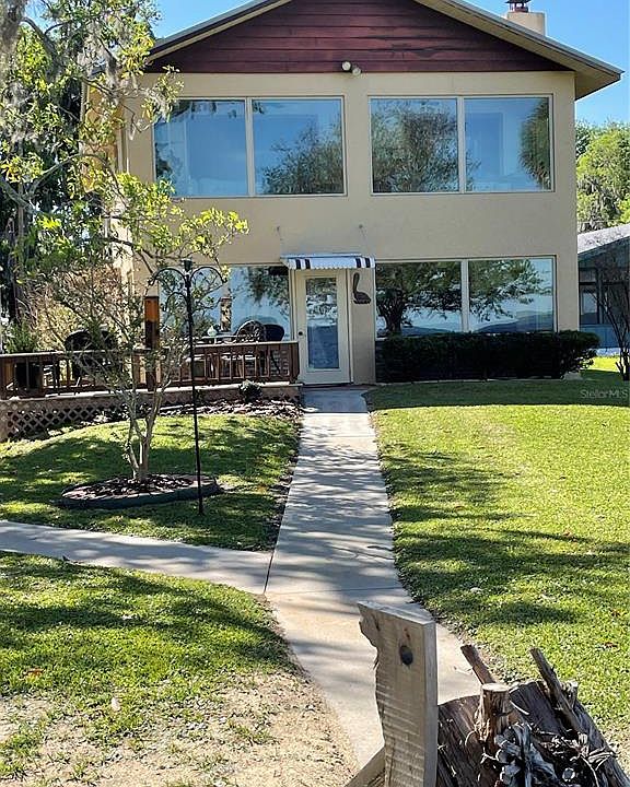 This 3 bedroom 2.5 bath has immaculate workmanship. The wood burning fireplace is a focal point for the lower level living room. Home has a new roof, windows, water heater, electric service, water softener, washer, dryer and dishwasher all within the past 5 years. The view from the living room and 2nd floor master bedroom is awesome. The 304 ft dock has water and electric to the end of the dock. Boat lift. Access to 2 boat ramps with the $100 voluntary club dues. Come and enjoy this 2 story, 2 car garage home on Lake George. Lake George is the 2nd largest lake in Florida offering fishing, crabbing and boating. Jump in your boat and enjoy 3 famous springs all within 8 miles. Salt Springs, Juniper Springs and Silver Glenn Springs. Ocala National forest has some of the best bike trails in Florida. Ocala National Forest also offers deer, turkey and hog hunting.