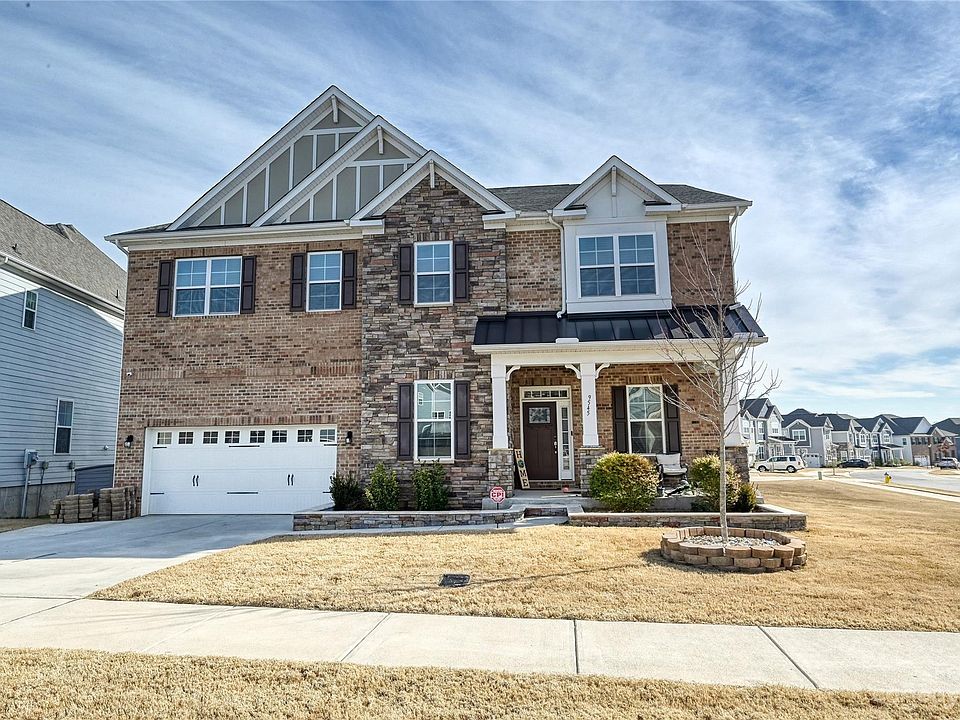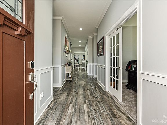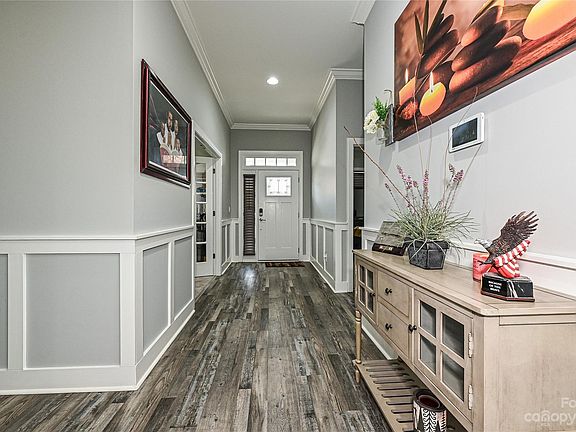 Welcome to The Sutton floor plan in the Cox Mill high school district, boasting 6 bedrooms, 5.5 baths, and open concept floor plan. The heart of the home is found in the stunning kitchen, featuring granite countertops, a gas range, huge island, and an abundance of storage. The adjacent sunroom offers plenty of natural light to unwind and relax. The main floor features a bedroom with ensuite bath and a home office. Upstairs, discover a spacious loft, four generously sized bedrooms, and the expansive primary suite with a separate sitting room, oversized tile shower, and access to the laundry room. The partially finished basement is a hidden gem, providing an additional bedroom and bathroom, recreation room, including tons of unfinished storage space. The walk-out basement leads to a covered concrete patio extending your entertainment options. Tons of upgrades in this home, including the added sunroom, water filtration system, tankless water heater, epoxy floored garage, much more!