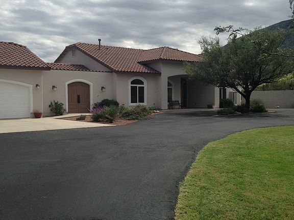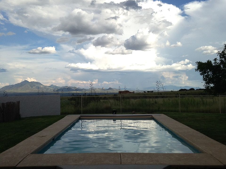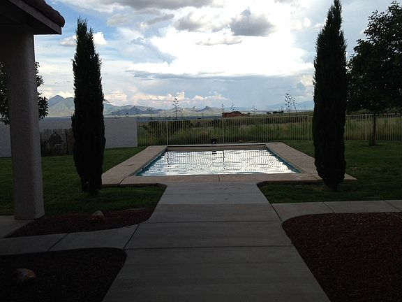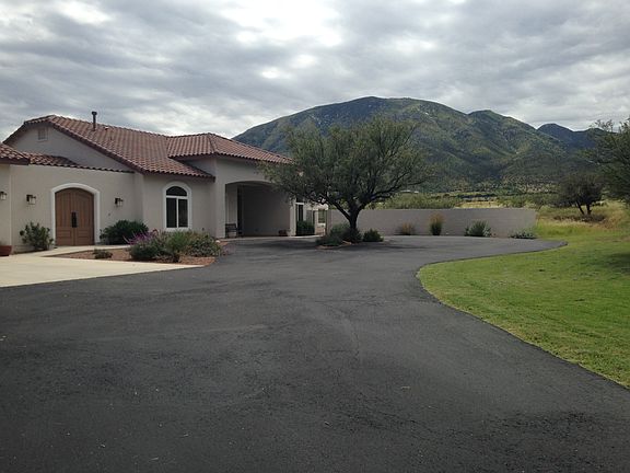 Custom home in Wild Horse, Cochise Counties premier gated community nestled in the foothills of the Huachuca Mountains. This three bedroom home boasts 360 degrees of stunning mountain views, a 1,235 sq. ft. garage/shop and a huge gourmet kitchen with every amenity. Located on over 4 -1/2 acres that borders Coronado National Forest to the south. Solar energy efficient home with additional solar heating for pool and amazing Harmen wood pellet fireplace.