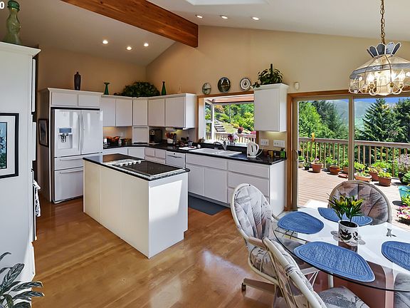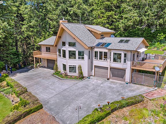 Private & quiet five acre parcel with mature trees and Pacific Ocean view. Beautiful one owner three level custom home get away with easy access to Hwy 101 and a walk on Whaleshead beach. End of the road privacy with ocean views from nearly every room.