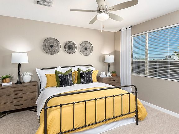 Welcome to this stunning Lennar Model Home (Ironwood Plan) offering 4 bed, 3 bath and separate Den/Dining room Situated in a prime location and is just steps away from a cadence resort style amenity center. Conveniently located minutes from the 202 & 24 Freeway for easy commuting. This home is part of the sought-after Cadence at Gateway, a master-planned community that provides resort-style amenities, including a fully-equipped gym, clubhouse, pools with slides, hot tub, tennis courts, basketball courts, parks, and more. Plus, it's close to the street from the Silver Valley elementary school and 5 min drive to charter school BASIS. kitchen is outfitted with stainless steel appliances, an RO system, 42" cabinets, quartz countertops, and a spacious waterfall island. The home features premium tile flooring throughout, with carpeting in the bedrooms. Every room is equipped with ceiling fans, and the home includes 9-ft ceilings, hard-wired smoke detectors, a fire sprinkler system, and dual-pane windows. For energy efficiency, there's a tankless water heater and water softener. The 2-car garage comes with built-in cabinetry for extra storage. The living room is enhanced with 5.1 surround sound ceiling speakers, ideal for movie nights. Enjoy outdoor living in the beautifully landscaped backyard with artificial turf, pavers, and a covered patio for dining and relaxation. The home is ideally located with easy access to major highways, shopping, dining, and entertainment. Don't miss your chance to live in this incredible model home Apply Today! Rent covers the HOA fee ($209). Minimum Lease: 12 months Pet Fee: Additional charge for pets. The property is vacant and ready to move- in. Please reach out for any questions or special requests.