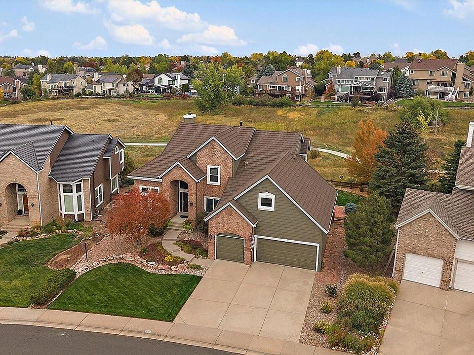 Discover the essence of Colorado living in this serene home, nestled on a quiet cul-de-sac with stunning mountain views and direct access to open space. Imagine evenings spent watching the sunset from your back patio or unwinding in the perfectly positioned 6-person hot tub. Enjoy the local wildlife or explore miles of trails and parks right from your doorstep, thanks to the convenient gate in your backyard. Inside, the main floor features beautiful hardwood floors, highlighted by a unique red oak inlay in the dining room. The spacious kitchen offers a cozy eat-in nook, coffee bar, and walk-in pantry. With six bedrooms and four baths, there's room for everyone, including a flexible main-floor office/bedroom with an adjoining full bath. Upstairs, find four bedrooms with vaulted ceilings, including a luxurious primary suite overlooking the open space. The finished basement includes guest quarters, a living room, and extra office or workout space. The oversized garage can accommodate up to four vehicles or provide additional storage and workspace. Meticulously maintained, this home boasts numerous upgrades such as triple-paned windows, exterior paint and a durable stone-coated steel roof. South facing driveway is sure nice in the Winter. Enjoy access to four neighborhood rec centers offering tennis courts, swimming pools, and fitness facilities. Your ideal Colorado lifestyle awaits!