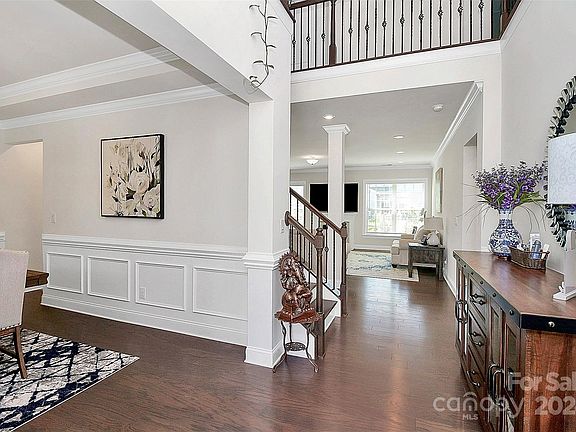 Welcome to the elegant Blythe plan, a spacious 5-bed, 4-bathroom home with a 3-car garage, conveniently located near the top-rated Cox Mill Schools. This home greets you with a bright and airy ambiance, featuring a living room, a guest suite, and a charming breakfast area that seamlessly flows into the stunning gourmet kitchen with hardwood floors. Ascend the oak hardwood box stairs to find hardwood flooring in the loft and hall areas, providing a cohesive and stylish touch. Upstairs, you will enjoy a loft and a media room with sound-dampening insulation and wiring to create your own home theater. Additionally, there are four generous bedrooms with three full baths. The primary suite features dual vanities with quartz countertops, a deep soaking tub, a separate shower, and a spacious walk-in closet. This residence offers a harmonious living experience that exceeds expectations. Don’t miss out on this opportunity to live in a home that combines elegance, comfort, and top-tier education.