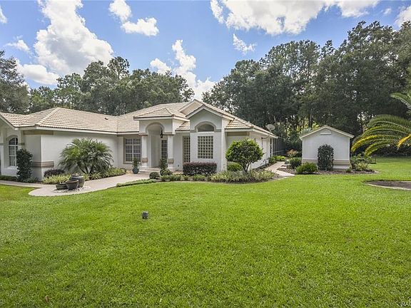 Live your Dream in this Stunning Rainbow Springs Executive Home in the Country Club Estates Section. Sits on a Double Lot over 1 Acre. Meticulously Landscaped with a Waterfall Entrance. Large Formal Living Room and Large Formal Dining Room. A Chef's Kitchen with Upgraded Matching Granite Counters That Follows Throughout The Home. The Traventine Floor Carries to an Oversized Lap Pool (15X35) with Built In Spa. Sitting Area In The Lana also Features the Traventine Floor. Master Suite has a Door Leading Directly To The Pool & Lanai. Finished "Garden Getaway Shed" has room to store your mower and tend to your Gardening Hobbies. Propane Fire Place In the Family Room. Heat pump for the Spa. Move In Ready-Don't Miss The Opportunity To Live In Rainbow Springs. Close by, Swim and Kayak In The Crystal Clear Water of The Rainbow River & Springs. World Class In-Shore Fishing In Nearby Crystal River. Redfish, Snook, Trout & Tarpon. Miles & Miles of Paved Bikeways Close By.