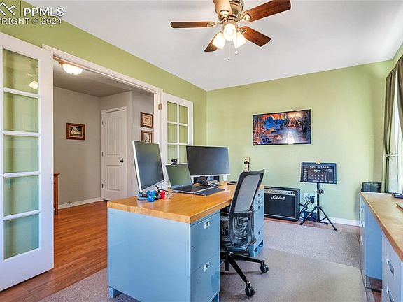Welcome to your dream home in Cuchares Ranch! This immaculate 2-story residence exudes pristine pride of ownership and offers a generous 2,353 square feet of luxurious living space. Boasting 3 bedrooms, office, 3 bathrooms, and a 2-car garage, this home is a true gem. The heart of the home is a chef's delight, featuring a spacious kitchen adorned with brand new stainless steel appliances. The well-designed floor plan includes an elegant office with glass French doors, a formal dining area, a comfortable living space, and a large loft offering endless possibilities. Indulge in the luxury of the expansive primary suite, complete with a 5-piece bath and a huge walk-in closet. Stay cozy with a gas fireplace, beat the summer heat with central AC, and enjoy the gentle breeze from ceiling fans throughout. Situated in School District 3-Widefield, this home is conveniently located near Fort Carson, Peterson AFB, Schreiver AFB, parks, and schools. The backyard is a private oasis, landscaped, fully fenced, level, and boasts a spacious patio – perfect for entertaining or enjoying quiet evenings. Don't miss the opportunity to call this meticulously maintained property your home. Schedule a viewing today and experience the epitome of comfort, style, and convenience!