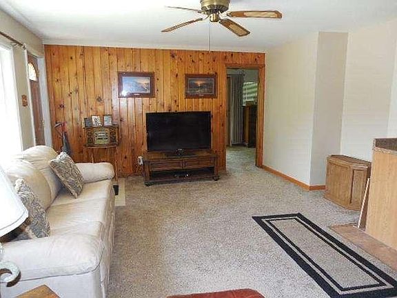 Desirable Carol Beach Estates! Not on the lake but just a short walk to it. 3 bedrooms, 2 full baths, patio doors off the master suite takes you to the covered patio & parklike fenced in half acre lot. Nice sized carpeted living room, kitchen w/ceramic tile flooring & new appliances. Laundry room appliances, ceiling fans in most rooms & dining room with built in buffet w/oak cabinets. A detached oversized 2.5 car garage w/bench & a shed for that extra storage space.