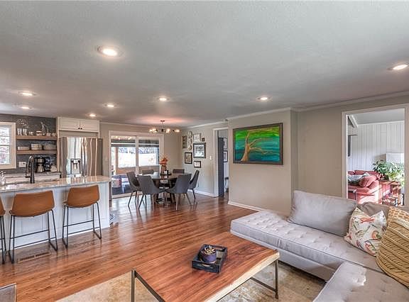 Spacious Ranch in Nall Hills with many updates and an open floor plan. Completely remodeled kitchen including cabinets, countertops, backsplash and addition of a large kitchen island and SS appliances. This home has 2 master suites! (One is currently being used as a home office) Hardwoods are throughout most of the home. The current master bath has been completely remodeled while the other two bathrooms have been nicely updated. Large concrete pads have been added to the outdoor living space, including a fire pit and outdoor bar making this the perfect home for entertaining and backyard family fun.