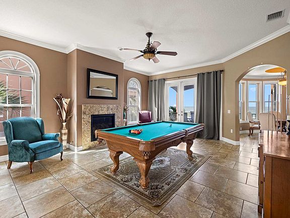 This exquisite 5-bedroom house in Treasure Island, FL, offers everything you need for an unforgettable vacation. Situated in a prime location, this retreat is just a short walk to the beach and features ample parking, an in-ground pool, and a hot tub. The house boasts a fully stocked kitchen, TVs in each bedroom, an indoor fireplace, and a pool table, ensuring a comfortable and entertaining stay for up to 10 guests. Welcome to your perfect Treasure Island getaway! Nestled in a tranquil neighborhood with stunning beachfront views, this charming 5-bedroom, 5-bathroom retreat offers luxury and comfort for up to 10 guests. The chef's kitchen is fully stocked with high-end stainless appliances, tons of cabinetry, and a large island with high seating, providing direct access to the dining and living area. The living room features a 55" smart TV, leathered sofa and chairs, and balcony access, making it an ideal space for relaxation and entertainment. The in-ground pool can be heated for an additional fee of $125 per night, upon request. Parking is available for 4-5 cars, with space for 2 vehicles in the garage and 2 in the driveway. The property is dog-friendly and family-friendly, offering amenities such as a Pack 'n Play and high chair. Located in a serene neighborhood, this house offers stunning beachfront views and is just a short walk to the beach. Enjoy the convenience of nearby water activities and explore the vibrant surroundings of Treasure Island. For transportation, Uber and Lyft offer dependable services to get around the area. Check-in is at 4 pm and check-out is at 10 am. The primary guest must be at least 25 years old to book, and absolutely no parties are allowed, as this is grounds for termination. The property enforces quiet hours between 10 pm and 7 am. No pets are allowed, and the pool heating is subject to availability, with the temperature typically reaching about 20 degrees above the ambient outside temperatures, up to a maximum of 85 degrees. Please be aware of potential cold fronts during Florida's colder months, which may affect pool heating. A guest verification process is required within 48 hours of booking confirmation, including signing a rental agreement and providing a valid ID and matching credit card. A non-refundable $55 damage waiver is required, covering accidental damage reported prior to check-out.