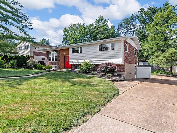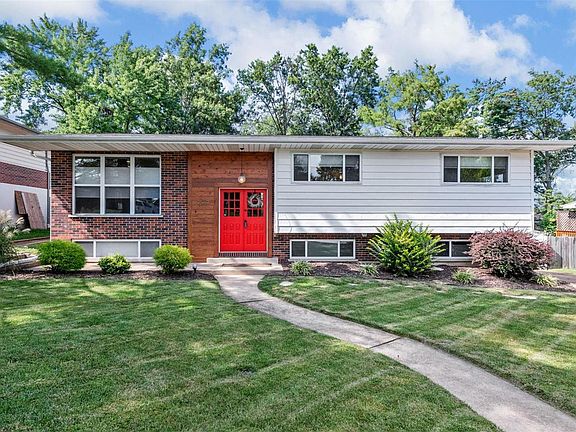 OPEN HOUSE CANCELLED. This adorable 3 bed, 2.5 Bath updated mid-century split-level is conveniently located just a block from Long Elementary. This home welcomes you in with the reclaimed cedar entry and real hardwood flooring. Newer windows offer ample natural light & top/bottom blinds. Kitchen is open to the dining that boasts granite counters w/ elongated lip seating, travertine tile, and SS appliances. Enjoy the charm of fall by opening the French doors & turning on the attic fan. Down the hallway is the shared bathroom, two other bedrooms that have ceiling fans, closet organizers, and quiet register booster fans with thermostat control. Primary suite has an extended-depth closet & organizers and "no step" shower. Lower level is finished with plush neutral carpet and newer large windows, offering endless possibilities for the buyer. Roof, HVAC, water heater, & DW were replaced in ’21. Close to Grant’s Farm, Whitecliff Park, & Aquatic Center.