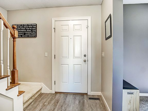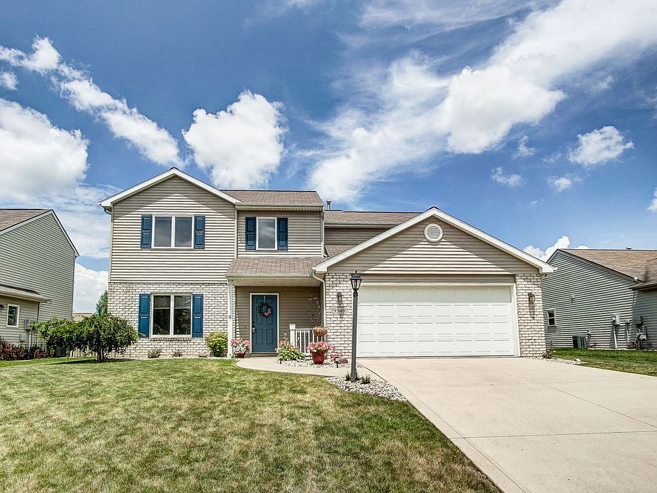 Don't miss this great family home in New Haven! Minutes from Fort Wayne, this home offers 4 bedrooms upstairs, including a master with 2 closets and its own en suite! As you enter the front door, you will notice the new vinyl plank flooring that flows throughout the kitchen, laundry, and eating areas on the main level. To the left of the foyer is the large family room with new carpet, a gas log fireplace, and an updated ceiling fan. Beyond the kitchen is the laundry room as well as a half bath for your guests. Upstairs you will find the large master bedroom with 2 closets, one of which is a walk-in! The master also features its own private bathroom. The additional 3 bedrooms are the perfect size for your family, guests, or home office. Enjoy the patio and built-in fire pit in the back yard, great for your summer entertaining! Additional features to note include new HVAC system installed in 2018, added flooring throughout the attic for additional storage, as well as updated paint throughout.