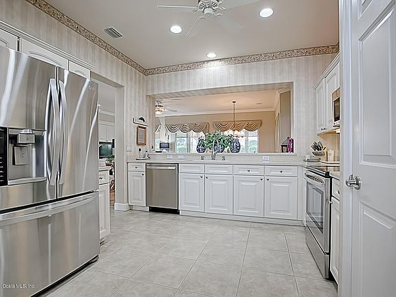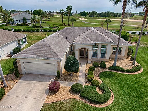 Spruce Creek Del Webb ''Fabulous Life Style'' Sanibel model, Enjoy the view of the golf course #6 tee of Championship sitting cozy in your family enjoying your fireplace on those cold day. Master bedroom w/soaking tub and hickory engineer wood flooring, Den-TV room (surround sound-received included), 2 Bedroom with den, 2 bathroom, and computer room with built-ins, enclosed lanai under air with separate 2 tons AC (2018) Newer house HVAC 2015 with Tech Pure air filter, Kitchen has Corian counters,bisque cabinets, newer upgraded appliances. Garage extended 4 feet,with laser for parking for both cars, epoxy flooring, invisible electric garage screen. Carpet in 2nd bedroom & Den. LED lights through-out home. Including home warranty. Furniture available under separate pk