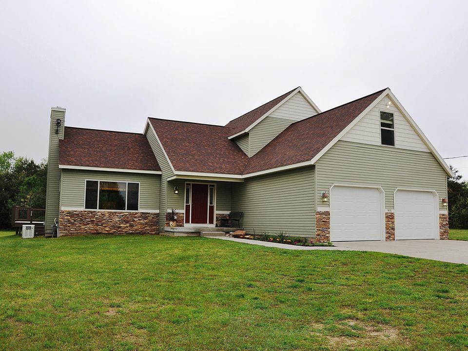 Look no further, your dream home awaits! This well-built, story and a half home sits on 4.5 acres and is situated well off the road for extra privacy and tranquility. Upon entering the home you will notice the open concept living room with vaulted ceilings. The kitchen is centrally located on the main floor with beautiful, slow close hardwood cabinets. The large island faces the dining area and large picture window so you can enjoy the backyard scenery. The living room allows for a lot of natural light, with large windows to view the deck area and the extensive array of birds that like to visit. The living room also has a beautiful stone wall chimney for the wood fireplace/stove, that truly is a centerpiece of the home. Off the kitchen and dining area you will find the stairs leading to the upper area as well as the master suite door. The master suite has a large walk-in closet and a private master bath area. You can walk through the master bath into the laundry area which then takes