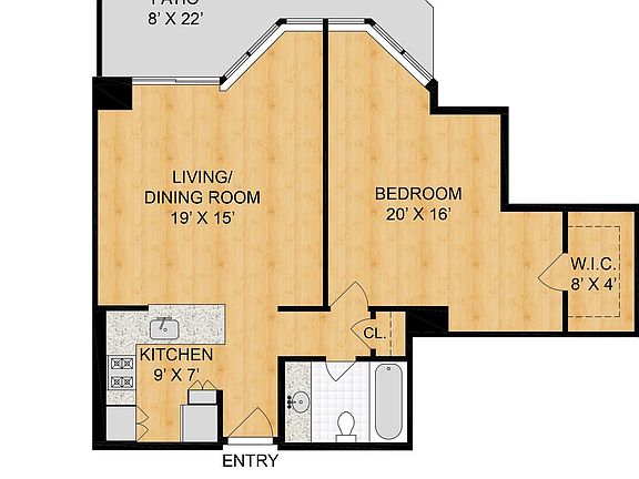 - Ceiling Fan(s), Walk-In Closet(s), Open Floorplan, Wood Floors, Combination Dining/Living, Kitchen - Galley
