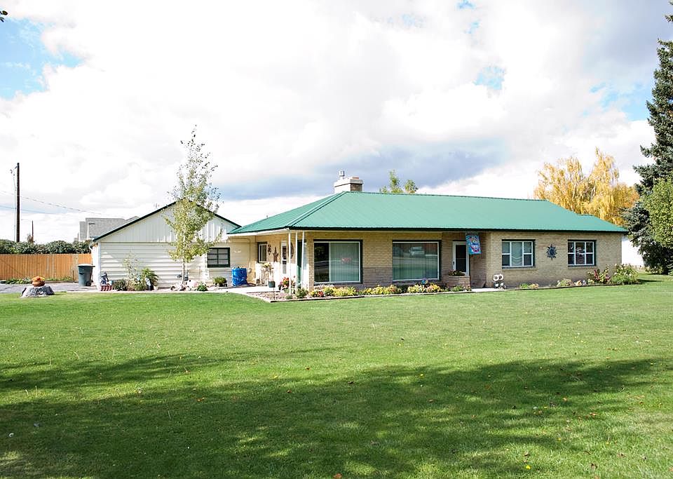 Beautiful brick home with a gorgeous yard!! Come see this great home! Main level laundry! 3 beds 2 baths on over half an acre with 4 water shares! All rooms on main floor with nice storage in the partial basement. Brand new carpet going into bedrooms along with updated flooring through kitchen and living room. Gas forced air and air conditioning. Newer metal roof. Oversized 2 car garage with a shop area inside plus RV parking . Fenced yard with electricity access. Close to schools and parks plus ball fields!! Make your appt today to see all this home has to offer you!