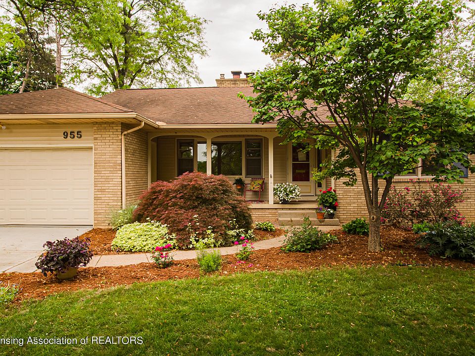 Main floor living, with more space than you can imagine from the sidewalk, is located just beyond the covered porch in this Glencairn ranch with mature trees lining the winding, picturesque street. Inside a formal dining room is to the left of a charming foyer. Just beyond the tasteful kitchen is adjacent to a sunny breakfast room. The formal living room has a view, a fireplace and a built in bookcase. 3 bedrooms and 2 full bath are on the east side of the house. The primary bedroom has anen-suite bath and overlooks the back yard. Much of the lower level is finished, there is a laundry room, a full bath, a fourth bedroom and large entertainment space with a gas fireplace. The location is fantastic, close to US127 and MSU and a hop, skip and a jump to the new elementary school.
