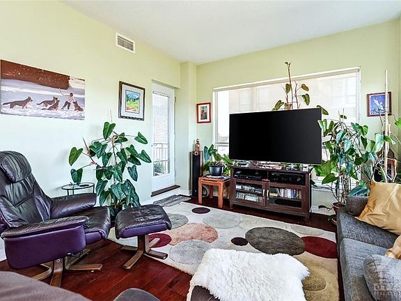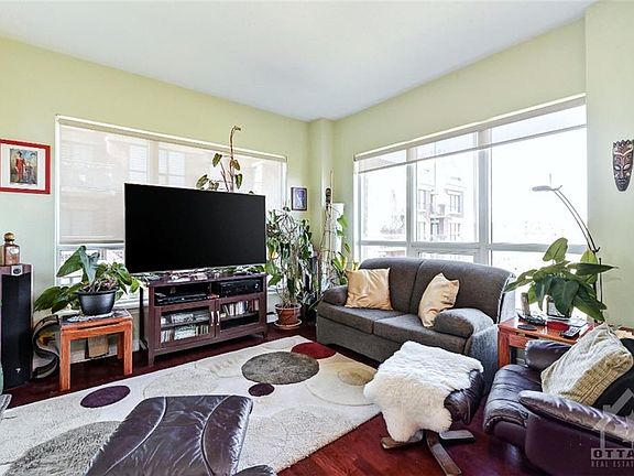 Fabulous views, from this end unit with wall of windows overlooking the Parkway. Wonderful high-end upgrades throughout. The large kitchen is great for entertaining, with plenty of cabinet space, granite counter tops, high end stainless-steel appliances and a breakfast bar. Hardwood throughout this beautiful unit and large master with ensuite featuring a roman tub, and separate shower. Bathroom vanities feature granite counters and ceramic floors. There is also an ensuite laundry for your convenience! Great balcony accessible from both living and bedroom. 24 hour irrevocable on all offers. Ideal closing Dec.1st