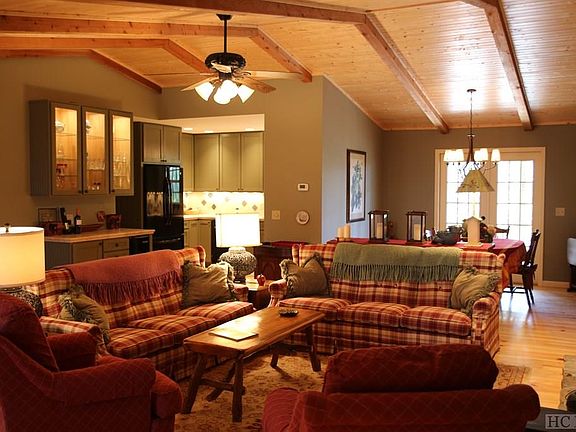 Big Bear Pen Mountain is the location of this three-bedroom, three-bath home that is being sold furnished and is move-in ready! This home checks so many of the boxes you'd want in a home whether you are buying to live in year-round, come seasonally, or offer as a short-term rental. This property has been under a vacation rental program for many years. All on one easy, living level with only a few steps to enter. The split bedroom plan floorplan makes it easy for everyone to have their own privacy. Wood floors throughout, with a wood, raised ceiling in the great room evoke a warm, mountain feel. Even though this home was built over 35 years ago, its renovations made it a beautiful place to call home and is right in line with trendy updates. Custom kitchen, covered and screened back porch for relaxing or dining. The dining area can open up to the covered porch area, offering a wonderful flow for dinner parties. There is a shared, paved driveway that leads right into the spacious two-car garage. Being sold fully furnished with the exception of a few personal items, this home is ready for you. At the time of the listing, there is a vacation rental in place that will be honored, whether a buyer waits until October to close, or the buyer takes on the renter. This property is located next to the Highlands Greenway Trail, so you can practically walk out of your door and be in the middle of the woods on a nature hike. Located close to Main Street, Highlands, and is just a few minutes from shopping in a town recently named in the top ten list of Best Small Town Shopping in the United States! Dining options range from hamburger places to 4-star dining and Wine Spectator Award-winning places.
