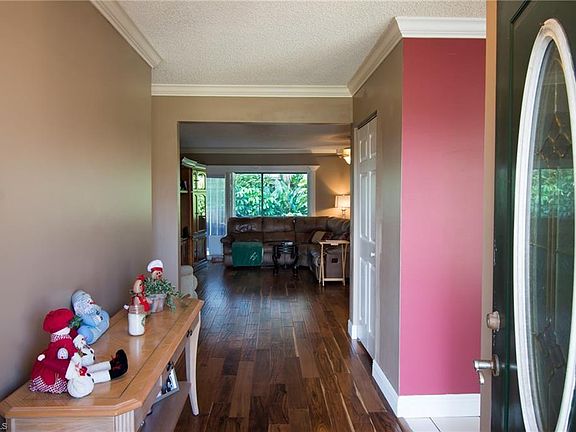 Great, cute and well maintained home in desired family neighborhood. Crown molding throughout, and wainscoting in the large bonus room. New fans and lights! Newly painted driveway. Remodeled kitchen, bonus room, and other areas. New wood floors, garage door, and hurricane level patio doors. Hurricane panels for new doors. Giant screened lanai.