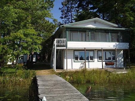 Dog Lake Deal Unique & Northwoods property. There is well over 300ft of level sandy shoreline on the chain. Its actually an island but there is a driveway in place so you can drive right up to the garage and home. Beautiful Southwestern views from just about every window in the home. The home features 2BD, 2BA and a large open rec room area in the lower walk out level. There is a cute as can be treehouse for the kids! Must see in todays market.