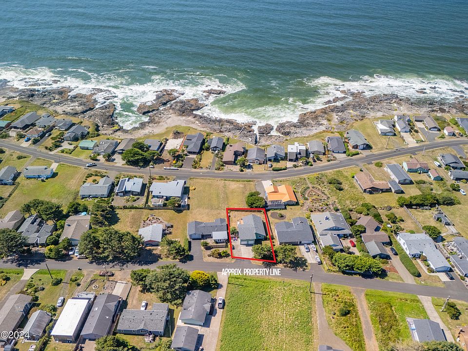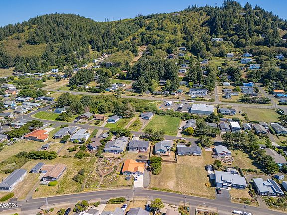 The Pacific Ocean will wave at you as you enjoy a meal at your dining room table, or drink a latte on the upper balcony of this two-story home on the west side of Yachats. Five big plate-glass windows let in the ocean scenes and summer sunlight along the back of the home, and a greenhouse highlights the deck that wraps around the house. New flooring throughout, new mini-split heating and air system, whole-house de-humidifier, and an update of the upstairs interior have all been added this year. Defined as a 2-bed/2-bath home, due to no closet upstairs, there nevertheless is a huge room on the second floor that has historically been used as the master bedroom. A new roof, gutters, exterior siding, outdoor lighting, LED retrofit lighting in garage, new windows in the kitchen, bedrooms ... and upstairs studio/office, plus ADA-height toilets were added in 2022. New insulation in the attic, new bathroom fan vented through the roof, removal of failing chimney and replacement of leak-damaged bedroom wall, as well as the addition of a new electric fireplace, were completed in 2023. The large upstairs room's exterior door opens onto the second-floor balcony for ocean viewing and sunset serenity. The other large room upstairs is currently an art studio, but would make a great office, lobby for the hobby, or game room. The large back yard is fenced and the front drive is paved. A welcoming, comfortable home right in the middle of Yachats, across from the 804 Trail, and within walking distance of just about everything this popular little village has to offer. Furnishings are negotiable, outside escrow.