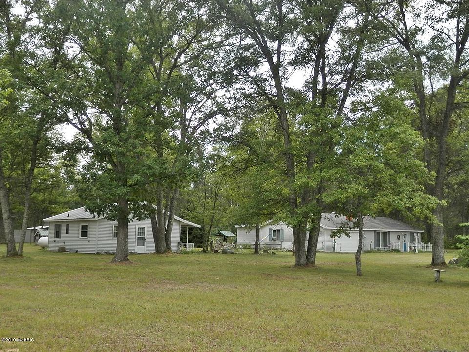 The ultimate location for enjoying year round North Country fun! Surrounded on 2 sides by 1000's of acres of State and Federal land with ORV and snowmobile trails, the Pine river for canoeing and kayaking, renowned fishing in rivers, streams and lakes plus skiing and golf at Caberfae Peaks! Invite your friends and family to use the guest cabin that sleeps 4-6 or hook up their camper or RV at the electric and water stations. There are 8 of them! There is a 3 bedroom manufactured home, a guest cottage and 2 wood outbuildings. Home has open floor plan with 12x40 three season room. Guest cottage has been rented on VRBO if you like the vacation rental idea for extra income. Bath facilities in both outbuildings have not been used for years but have possibilities. Dream hunting camp!